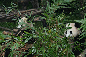 Zobaczmy. Pandy. Wiedziałem o rezerwacie pand w Chengdu, ponieważ mój przyjaciel zdobył tam kiedyś pracę na lato. Naprawdę, tylko tyle wiedziałem o Chengdu. Jest urocze. I wspaniałą rzeczą jest być honorowym gościem zza granicy w takim miejscu- pokazują ci wszystkie fajne miejsca, zabierają do pand, tych czerwonych i tych wielkich, a potem wsadzają cię w jednorazowy niebieski kitel i rękawiczki (żeby ochronić pandy przed tobą, nie odwrotnie) i dostajesz na kolana jednoroczną pandę. Czysta, czysta radość. Lepsze niż każda ilość nagród. Sprawia, że bycie pisarzem wydaje się naprawdę warte zachodu. Podejrzewam, że pokój i harmonia na świecie nastąpiłyby w kilka tygodni, gdyby ludzie co miesiąc dostawali pandę na kolana. Szczerze.