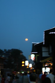 Z muzeum pojechaliśmy do innej części Chengdu i zjedliśmy kolację na dziedzińcu. Co, poza tym, że stanowiło drugi bankiet tego dnia, było niesamowite. Mnóstwo drobnych dań, każde podane, z których większość po prostu jadłem i potem czasem pytałem, co właśnie zjadłem. (“To słodkie danie? Te czerwone rzeczy w białym czymś?” “To kolcowój szkarłatny we wrośniaku różnobarwnym.” “O, rany.”) Pełnia.