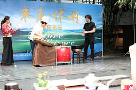 Tak naprawdę, nie jestem do końca pewien, dlaczego tam byliśmy i po co to było, ale było to niezwykle przyjemne: prezentacja o rejonie Chengdu i Syczuan jako miejscu na wakacje, jak sądzę, oraz o przyszłości rekreacji w Chengdu. Cokolwiek to było, świetnie spędziliśmy czas: oglądaliśmy bliźniaczki demonstrujące ceremonię herbaty, trzy dziewczyny wygrywające niezwykłe melodie na tradycyjnych instrumentach,